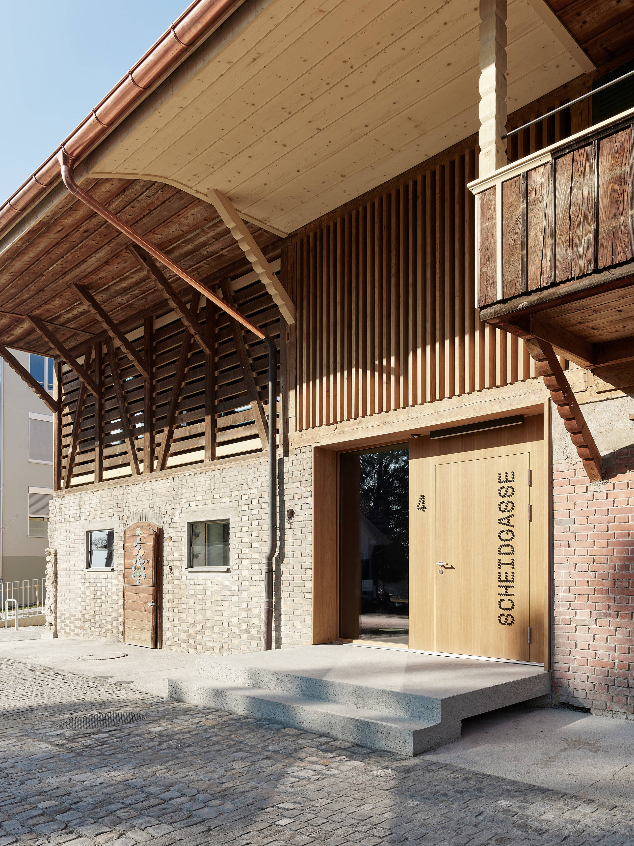 Das erhaltenswerte Bauernhaus wurde im Zuge der umliegenden Arealentwicklung umgebaut. Die spannende Aufgabe des im 19. Jahrhundert erbauten Gebäudes lag darin, den leerstehenden Ökonomieteil in ein neues Probelokal für einheimische Musikvereine umzubauen.